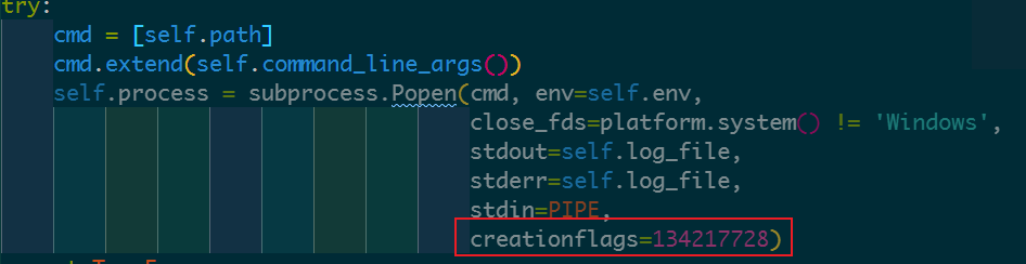 另外-w并不能解决selenium执行时出现控制台窗口的问题,需要库所在的文件Lib\site-packages\selenium\webdriver\common\service.py,其中76行附近的位置添加creationflags=134217728即可解决。